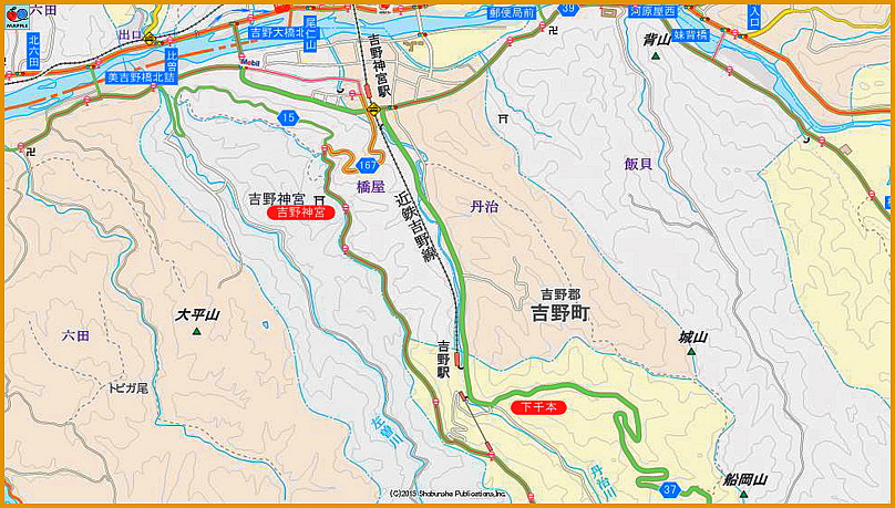 吉野神宮駅の交差点を、奈良県道39号から37号に左折すべきところを直進してしまい、予定にない吉野神宮に行ってしまいました。